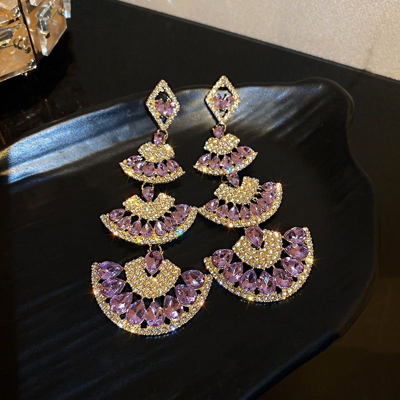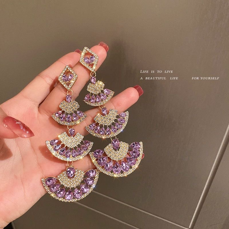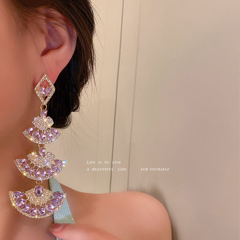925 silver needle diamond-encrusted fan-shaped earrings in Europe