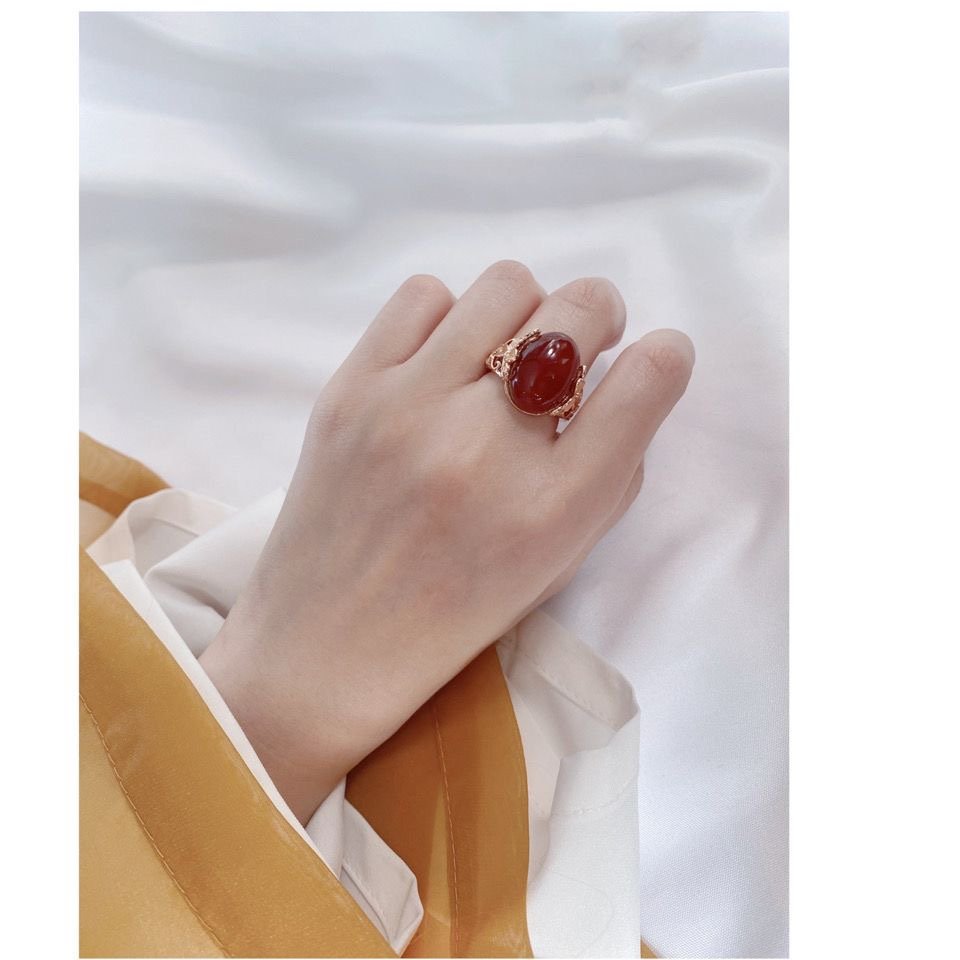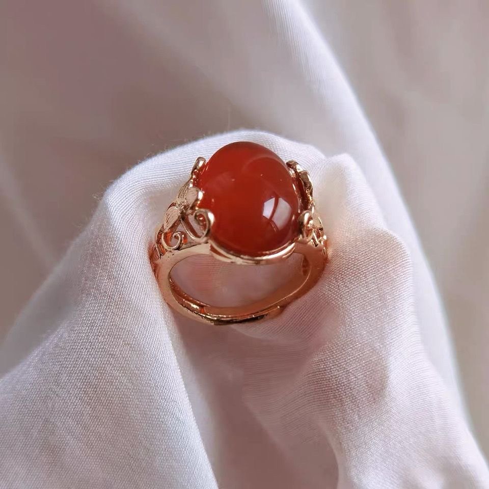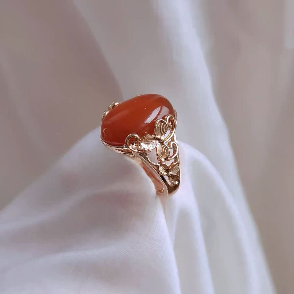 Carved gold hand-drawn moonstone French antique two-color gold lace ring